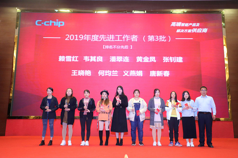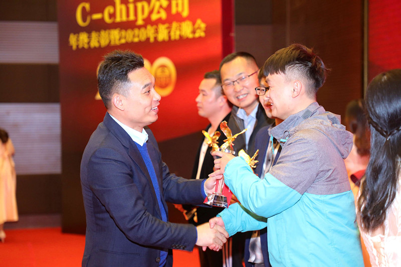 是勤奋让我们有所收获,是付出让我们倍感荣耀!一年一度的年终表彰是公司年会的重要环节,表彰那些在平凡中超越自我,在工作中追求完美,在劳累中享受快乐,在拼搏中燃烧激情的优秀员工、先进工作者,年度进步员工。他们用实际行动证明了在平凡的岗位上也能做出不平凡的成绩,是他们的倾情付出,拼搏奋进,才有了公司今天的辉煌,他们是C-chip 企业精神的实践者,践行者。在今晚的盛典中,他们是备受瞩目的焦点,是全体员工的榜样和标杆。聚光灯亮起,公司高层领导分别为29名先进工作者、15名优秀员工、6名年度进步奖获得者、5名优秀干部颁发荣誉奖杯及现金奖励,这是给在这一年默默耕耘人的暖心回报和对他们工作的认可。