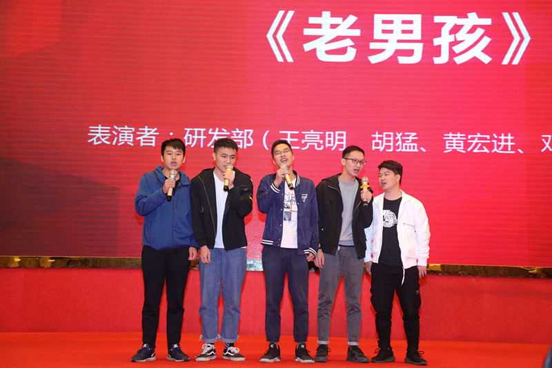 研发部的几个大男孩献唱了一首经典歌曲《老男孩》,缓缓的歌曲仿佛在追忆着我们逐渐远去的青春岁月,一下子让我们想起了那些年的梦想和激情。